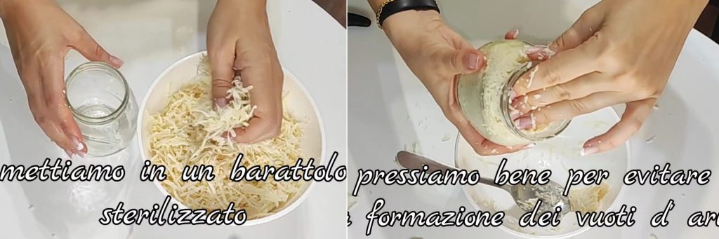 Colocamos nos potes esterilizados pressionando bem para evitar a formação de bolhas de ar. Fechamos bem e colocamos os potes em um lugar fresco, protegido da luz.
