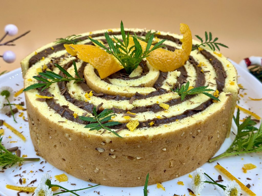 Rocambole Doce de Natal com Creme de Chocolate e Laranja