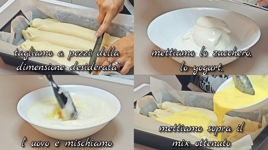 Em uma tigela misture o açúcar, o iogurte e o ovo. Derrame a mistura em cima dos rolinhos, cobrindo bem toda a superfície.