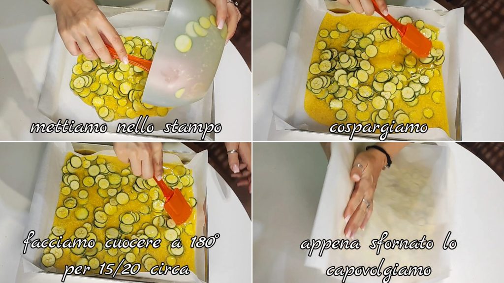 Colocamos a mistura obtida na forma com papel manteiga dentro, polvilhamos e assamos a 180° por cerca de 15/20 min. Assim que retirado do forno, viramos.