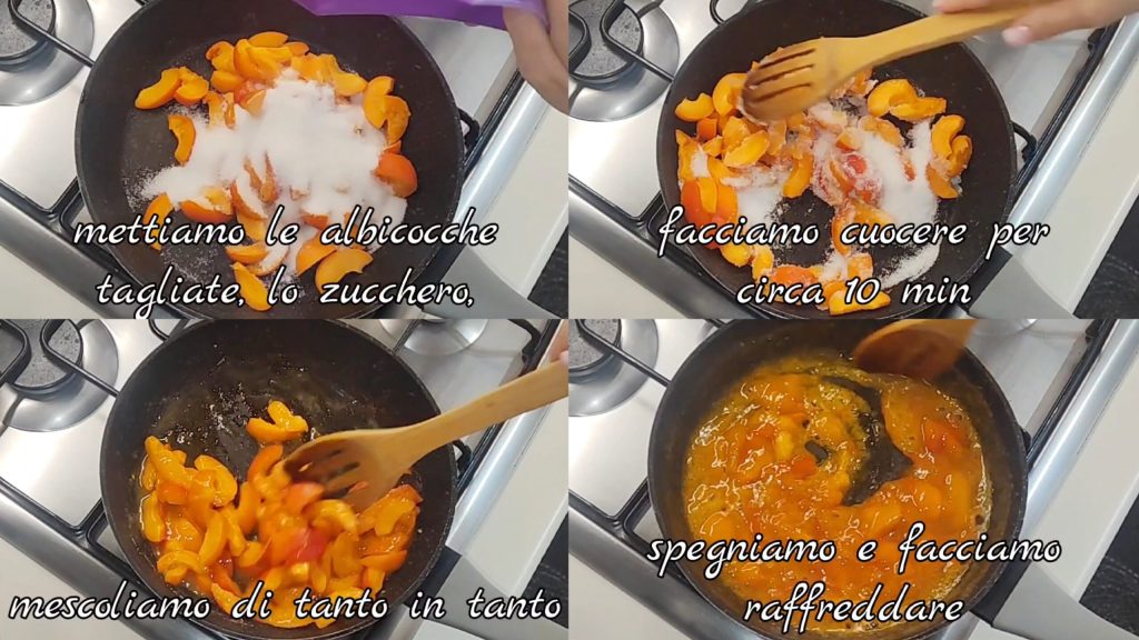 Em uma panela, colocamos os damascos cortados em pedaços, o açúcar e deixamos cozinhar por cerca de 10 minutos, mexendo de vez em quando. Desligamos e deixamos esfriar.