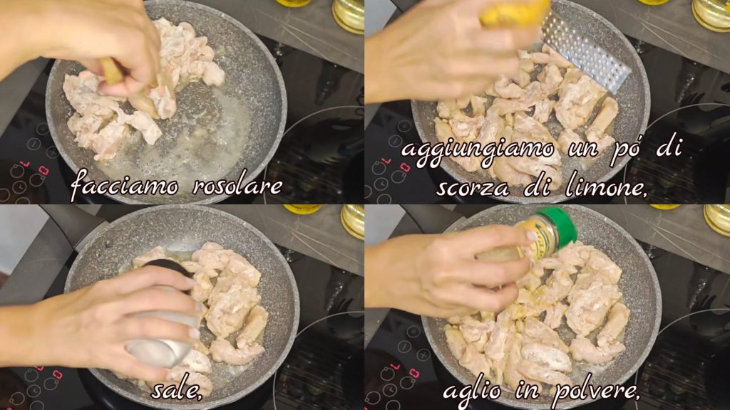 deixamos dourar. Adicionamos um pouco de raspas de limão, sal, alho em pó