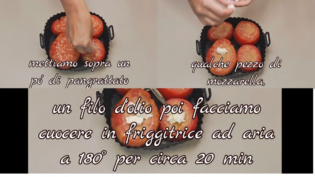Tomates recheados com arroz e muçarela na fritadeira elétrica