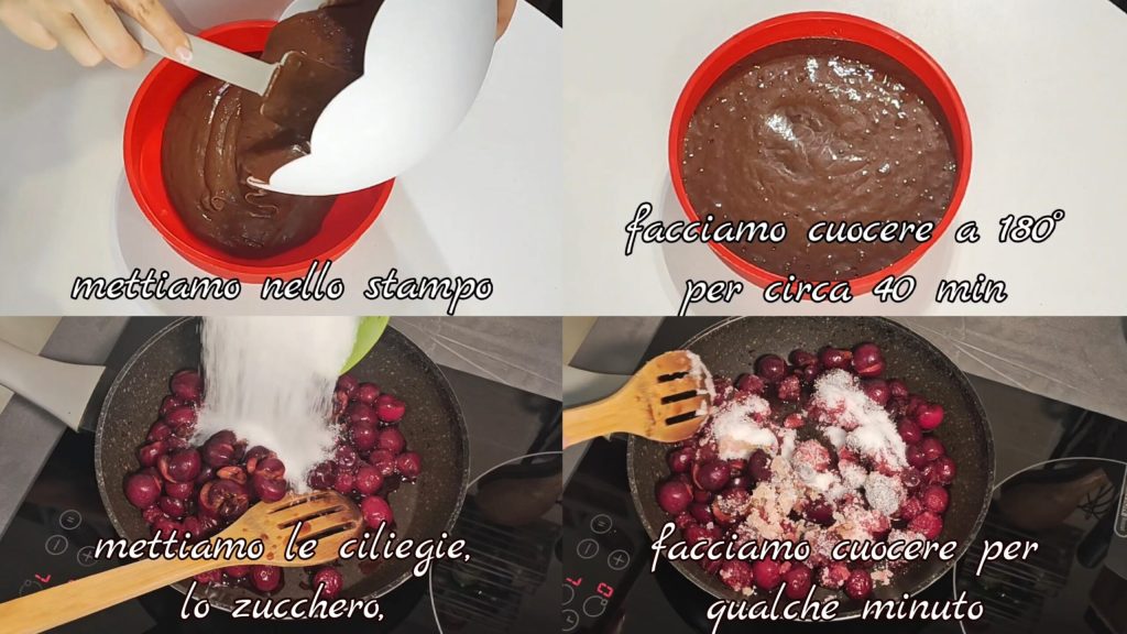 Em uma panela, coloque as cerejas sem caroço, o açúcar e cozinhe por alguns minutos (até que solte o xarope).