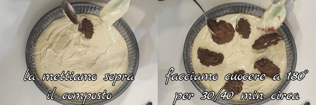 Colocamos por cima da massa usando duas colheres. Assamos a 180° por cerca de 30/40 min.