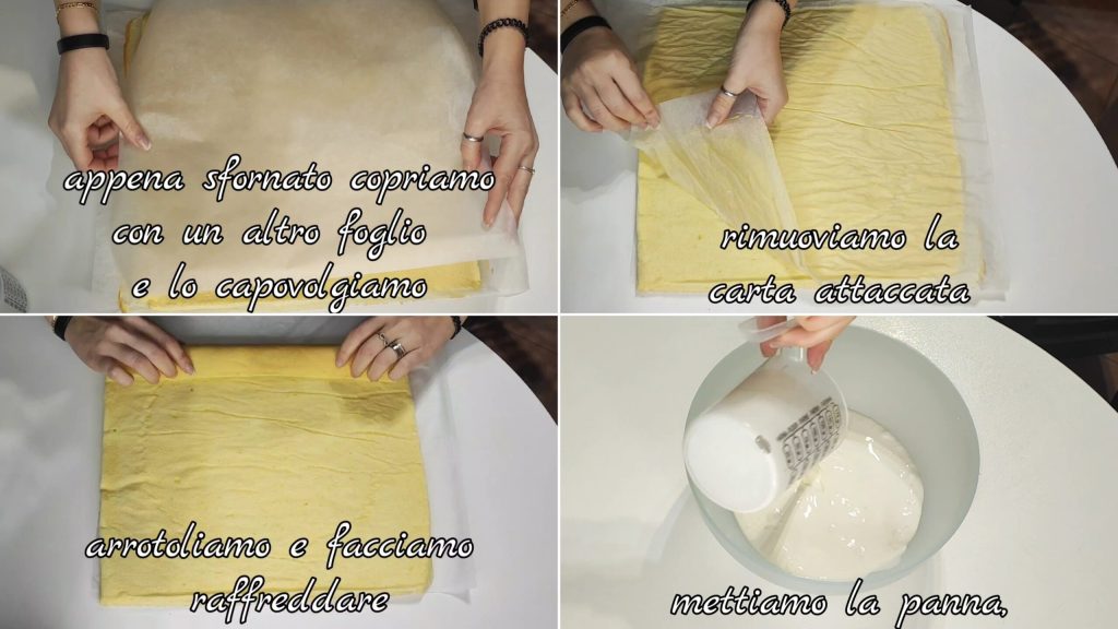 Assim que sair do forno, coloque uma folha de papel manteiga por cima e vire. Remova o papel usado e enrole. Deixe esfriar.