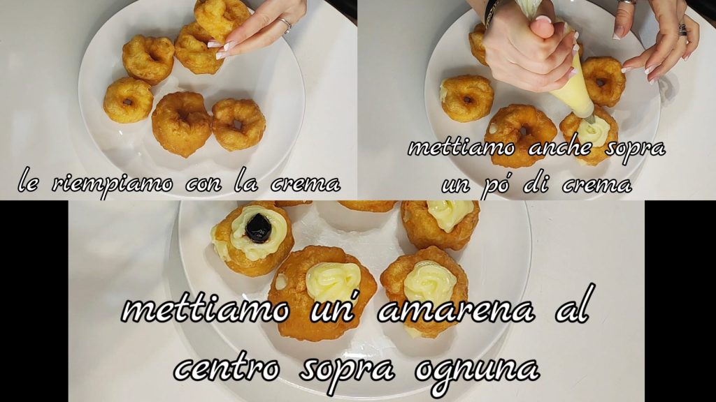 Para a preparação das zeppole com creme, assista ao vídeo AQUI.