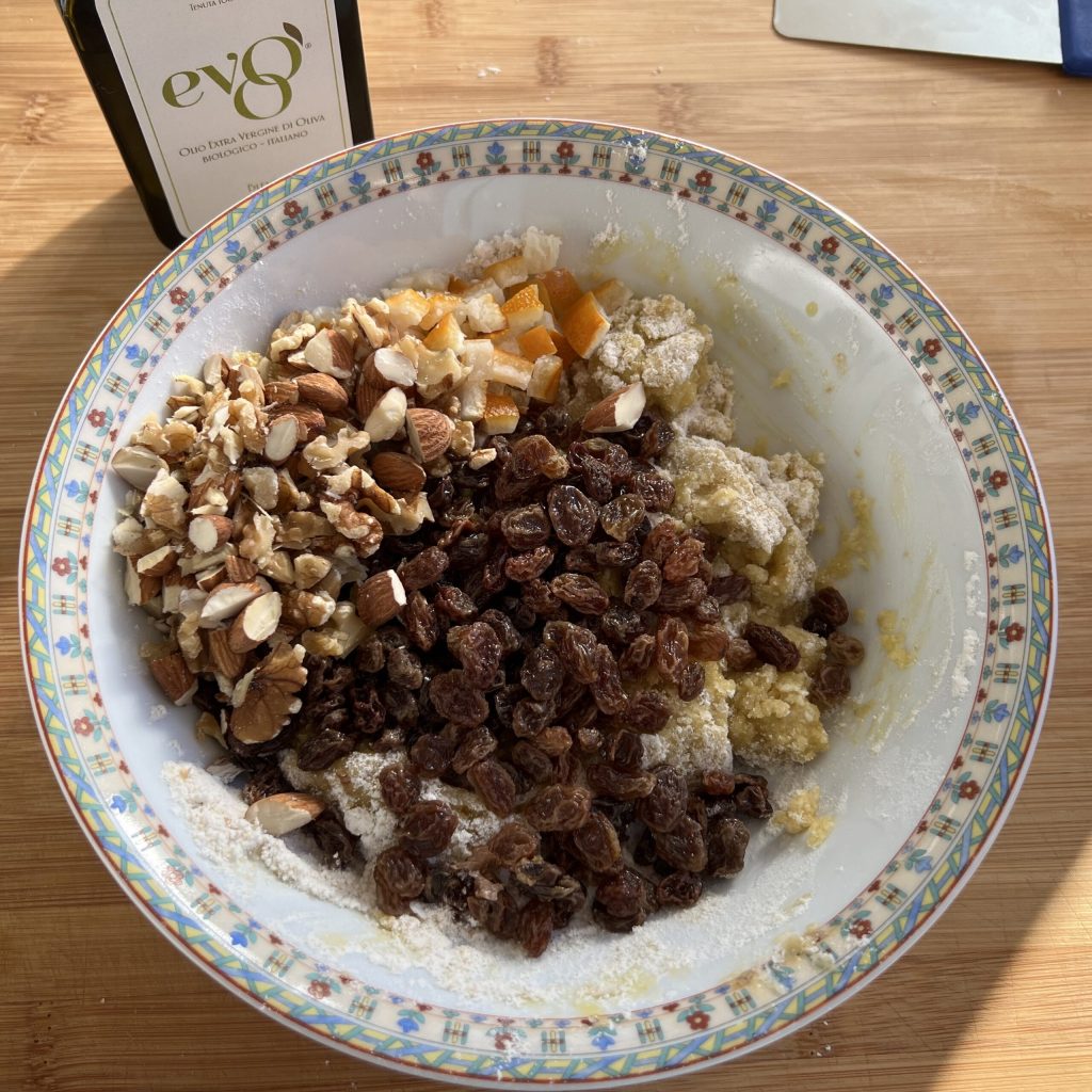 Para a minha versão preparada sem o uso de manteiga, mas sim à base de azeite de oliva extravirgem, escolhi o extravirgem Evoo Blend Premium Organic da Tenuta 100 Torri. Delicado, mas com aroma intenso, agradavelmente doce ao paladar e com notas de amêndoa e ervas aromáticas, é perfeito para realçar o sabor deste doce rico em frutas secas.