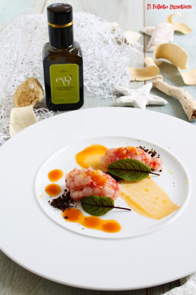 Para esta receita, utilizaremos o precioso camarão vermelho de Mazara, de sabor adocicado. E para realçar ao máximo um produto especial como este, usei o azeite extravirgem Monovarietal Ascolana Tenera da empresa Evoo®.
