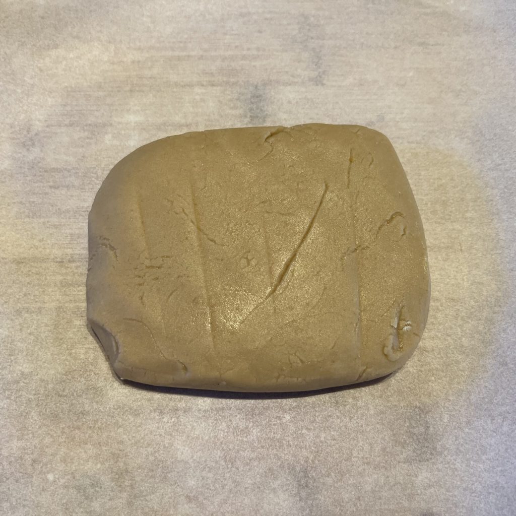 • Assim que a mistura começar a ganhar consistência, transfira-a para a bancada e continue a amassar até obter uma massa compacta, que você colocará para descansar na geladeira envolta em filme plástico
