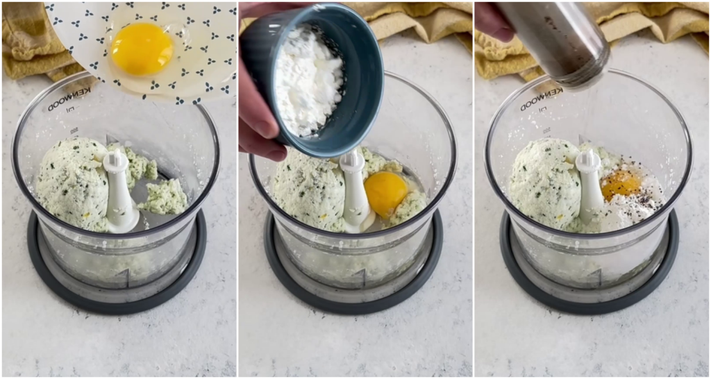 • Adicione o ovo, o amido de milho, sal e pimenta.