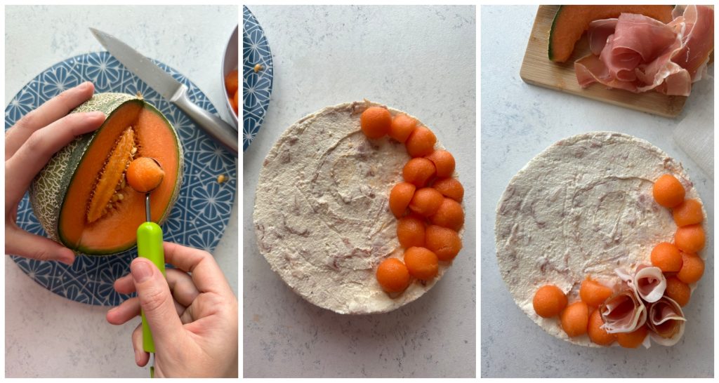 Antes de servir, dedique-se à decoração. Faça bolinhas do melão e disponha-as elegantemente ou ao seu gosto sobre a cheesecake. Complete com algumas rosinhas de presunto e sirva bem gelada. Bom apetite!
