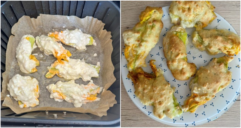 As flores de abóbora recheadas em massa na fritadeira a ar são uma deliciosa alternativa à versão frita, que permite desfrutar deste clássico da culinária italiana de uma forma mais leve e saudável. As flores de abóbora, com seu sabor delicado e textura macia, são um ingrediente versátil que pode ser usado em muitas preparações, e a cocção na fritadeira a ar permite obter um resultado crocante e saboroso com um uso mínimo de óleo.