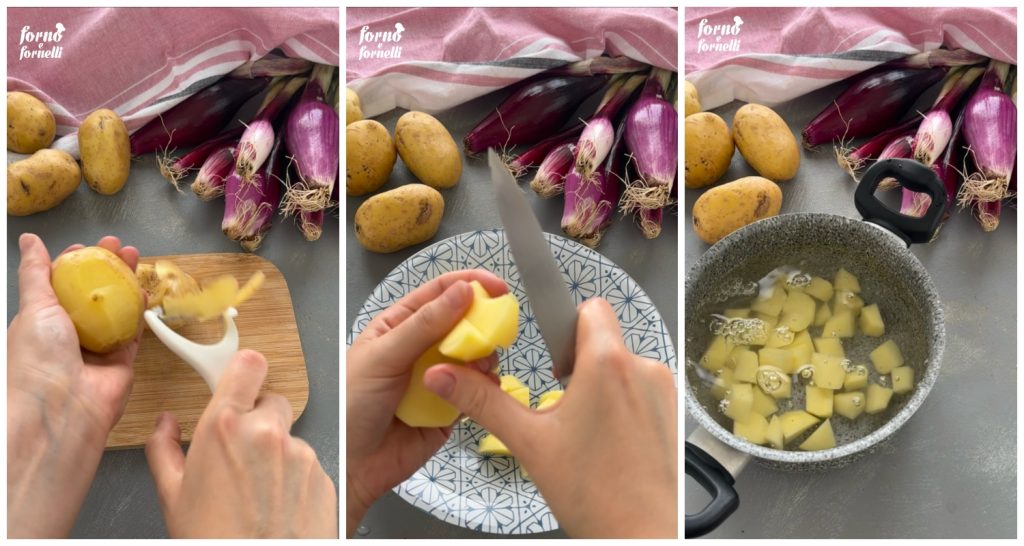 Para preparar a salada de batata com azeitonas e feta, a primeira coisa que você precisa fazer é preparar as batatas. Descasque-as, lave bem, corte em pedaços (não precisa ser uniforme) e coloque para cozinhar em uma panela com água fervente salgada. Elas estarão cozidas quando estiverem bem macias, use um garfo para verificar, pode levar de 10 a 20 minutos.
