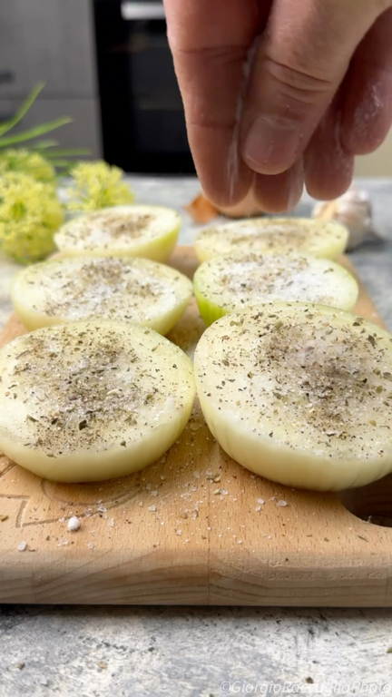 Se quiser obter uma caramelização ainda mais intensa, você pode cortar levemente a superfície das cebolas com uma faca antes de temperar.