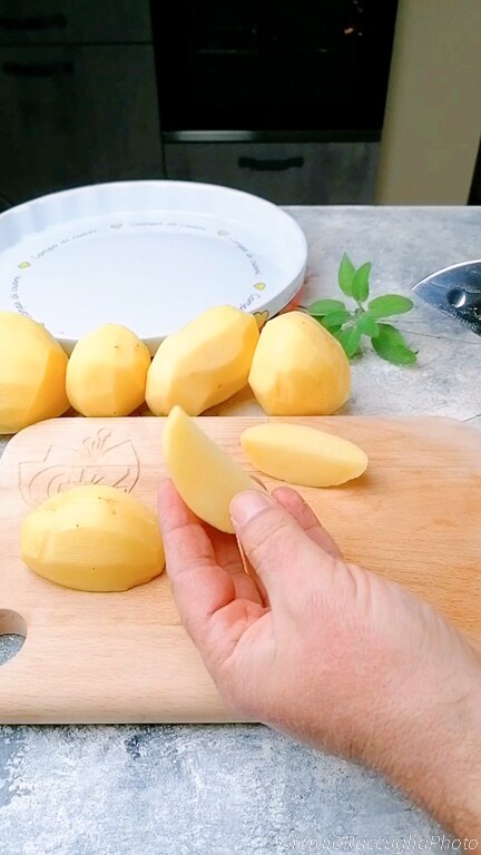 • Para preparar as batatas assadas com salsa, sálvia e bacon, comece descascando as batatas,