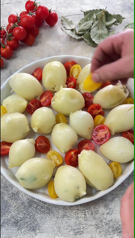 Uma pitada de sal e pimenta dará a dose certa de sabor, enquanto algumas folhas de louro darão um aroma irresistível ao prato durante o cozimento. Para completar a preparação, os tomatinhos mistos, vermelhos e amarelos, adicionarão um toque de frescor e cor ao prato finalizado. Uma vez gratinadas no forno, essas cebolas recheadas se tornarão um prato principal ou um acompanhamento perfeito para enriquecer qualquer mesa. A seguir, deixo outras receitas de forno que vão te deliciar.