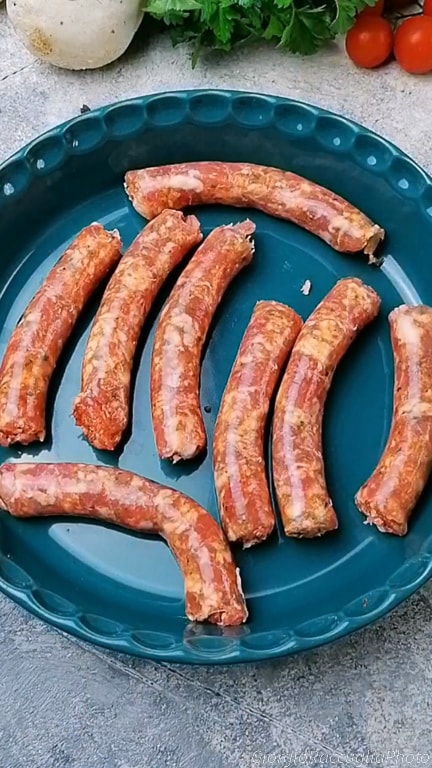 Coloque a linguiça em uma assadeira,