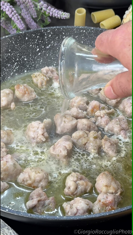 • Adicione a linguiça desmanchada e deixe dourar bem,