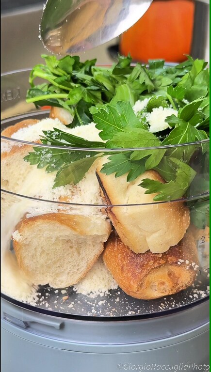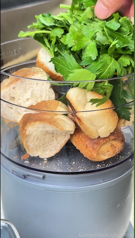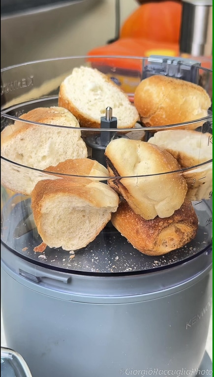 Agora prepare o empanado: coloque o pão amanhecido em um liquidificador,