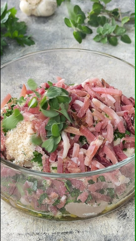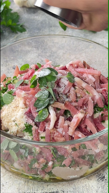 O tempero é enriquecido por uma mistura de aromas frescos e intensos: a salsinha picada e o orégano fresco se combinam com o alho para conferir perfumes mediterrâneos, enquanto o azeite de oliva extravirgem ressalta o sabor natural do frango e torna o empanado dourado e saboroso. Sal e pimenta completam a receita, equilibrando os sabores e proporcionando aquela nota de sabor que torna este prato equilibrado e adequado a todos os paladares.