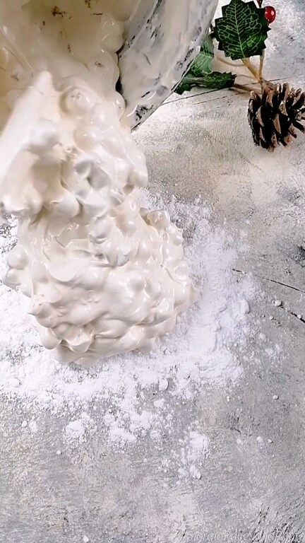 polvilhe novamente com o açúcar de confeiteiro, ajudará a não grudar a mistura nas mãos.