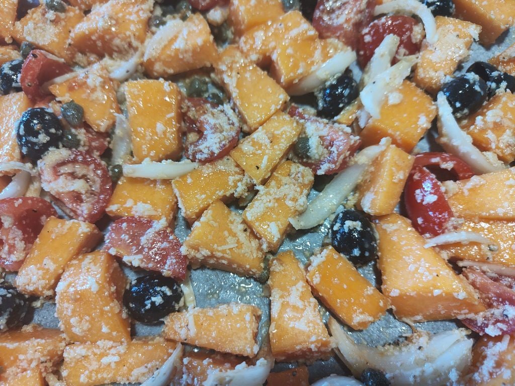 Abóbora gratinada à moda mediterrânea. Um acompanhamento de aparência rústica, mas muito elegante e de sabor delicado, com um aroma deliciosamente apetitoso. O que você está esperando para experimentá-lo?