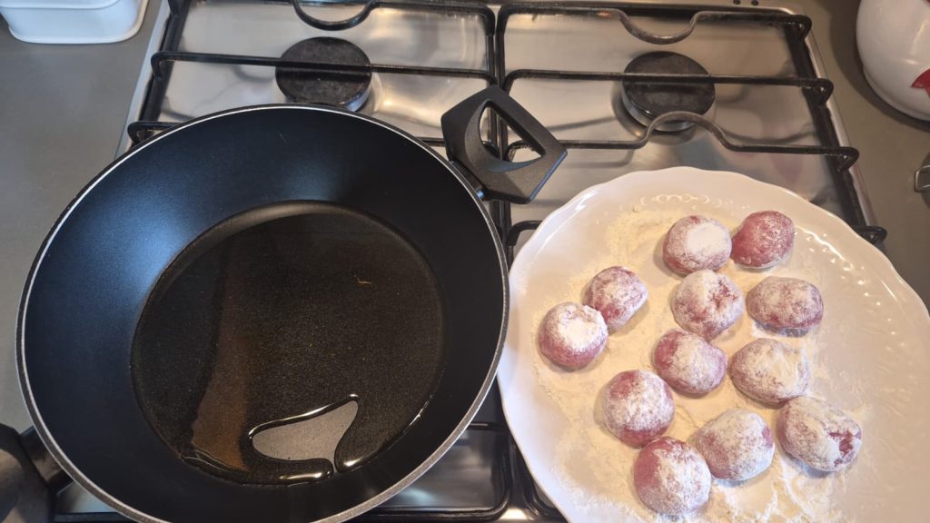 Enfarinhe ligeiramente as almôndegas (tenha cuidado para remover delicadamente o excesso)
