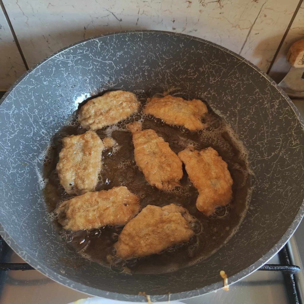 Enquanto isso, já colocamos em uma frigideira óleo bem quente suficiente para fritar as anchovas douradas e, em seguida, colocamos em papel absorvente de cozinha para escorrer um pouco do óleo da fritura.