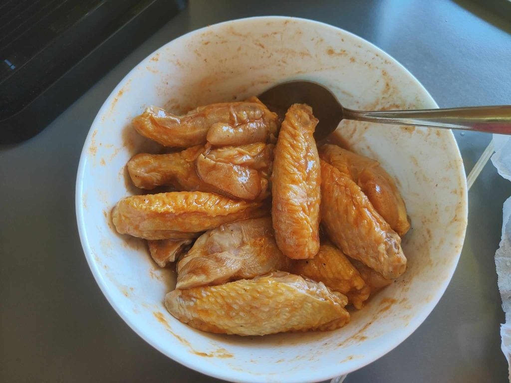 De vez em quando vire as asas banhando-as com a marinada, deste modo ficarão perfeitamente caramelizadas e macias.