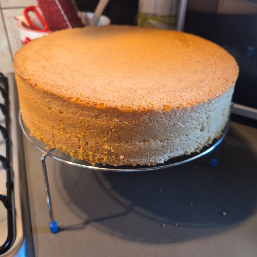 Antes de cortar o Pão de Ló, deixe-o descansar por pelo menos 5-6 horas (ou, idealmente, prepare-o no dia anterior). Será mais estável e fácil de fatiar de maneira uniforme.