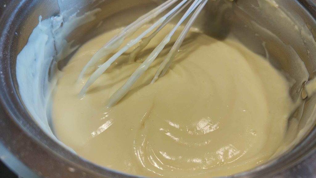 • Em seguida, adicionar a farinha, misturar com o batedor para remover quaisquer grumos.