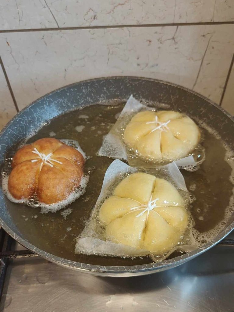 Uma vez cozidos, coloque os bomboloni em papel absorvente.