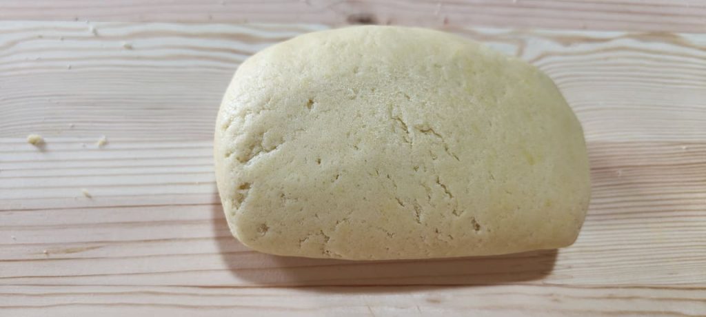Retome a massa do frigorífico, estenda-a sobre uma tábua de amassar com uma espessura não muito fina, mas também não muito grossa.