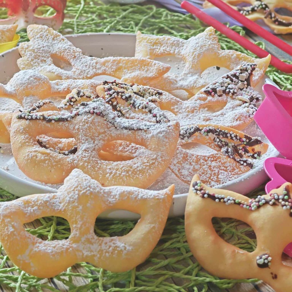 Chiacchere a máscara de carnaval! Perfeitas para comemorar o Carnaval com muito estilo.