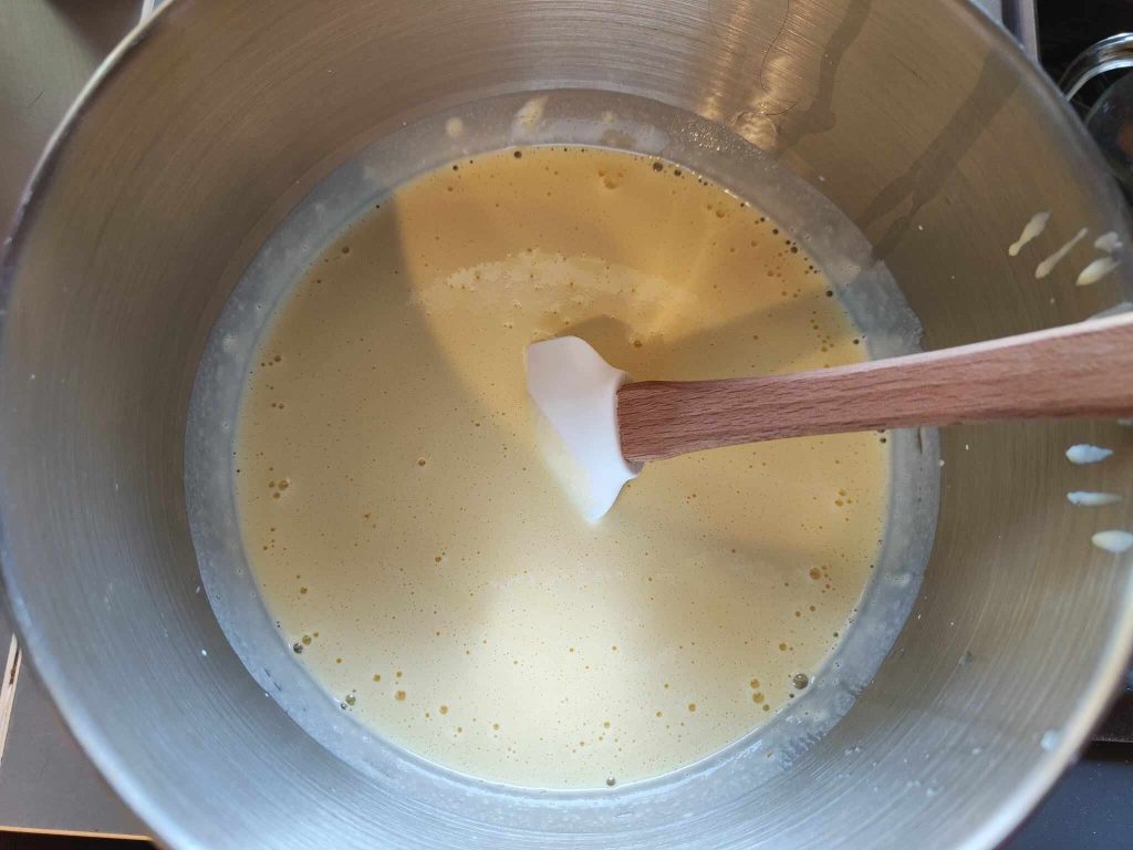 Adicione a mistura de gemas e açúcar e misture novamente.