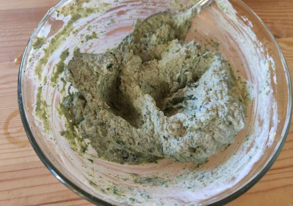 Em uma tigela, misture a ricota com os espinafres e o queijo ralado.