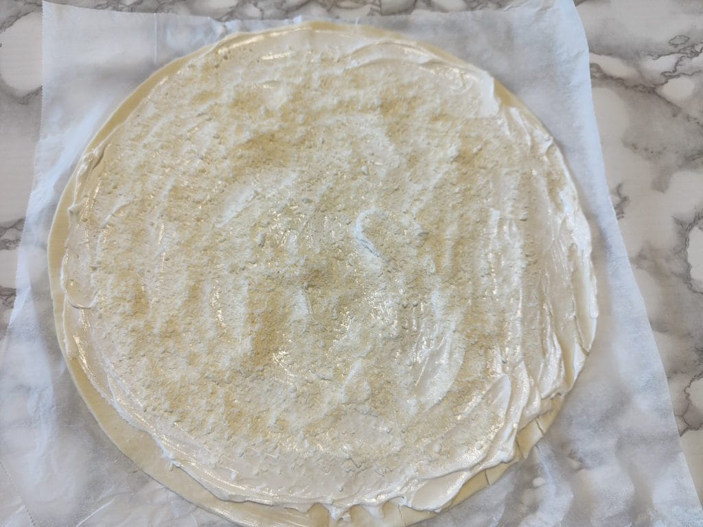 • Desenrole o primeiro disco de massa folhada deixando-o sobre seu papel manteiga.
