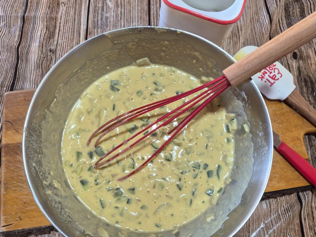A beleza desta base é a generosidade: hoje escolhi abobrinha, mas você pode ralar na massa o que a estação oferecer — como cebolas doces ou cenouras — sem mudar nem por um minuto o tempo de cozimento.