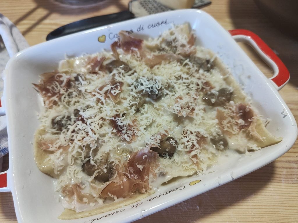 Para a Lasanha com cogumelos e speck