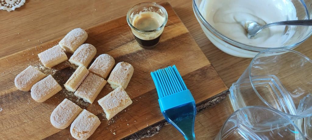 - q.b. café (para diluir o iogurte e para mergulhar os biscoitos)