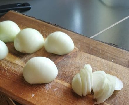 Pode fazer isso refogando a cebola com um fio de óleo e uma xícara de água.
