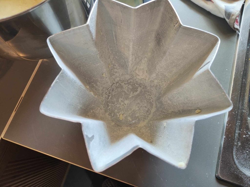 Unte a forma de pandoro e polvilhe farinha na forma de 750 g