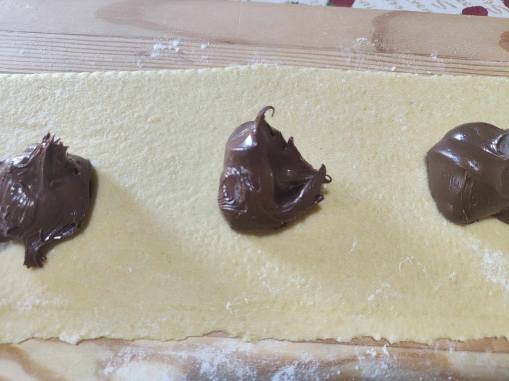 • Feche a massa sobre si mesma, pressione com os dedos ao redor dos montinhos de Nutella e corte os ravioli com o cortador de massa.