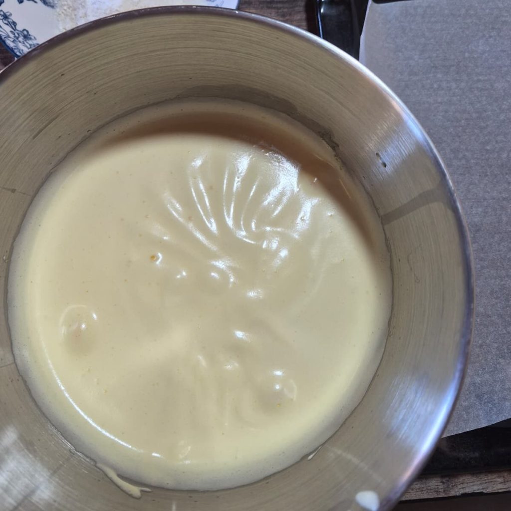 Reserve cerca de 3-4 colheres da crema numa tigelinha coberta na geladeira (vai servir para a decoração externa).