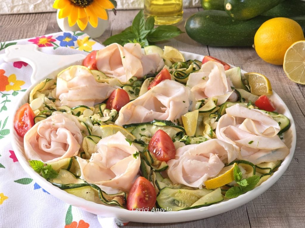 Salada de abobrinha com peito de peru assado ao limão. É a receita perfeita para o verão, muito fácil e se faz em poucos e simples passos.