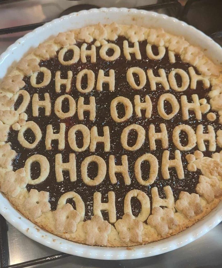 Recheada com uma geleia de frutas vermelhas, tem uma frolla crocante e deliciosa, e se caracteriza pela sua decoração com a escrita oh oh realizada com moldes em forma de letras.