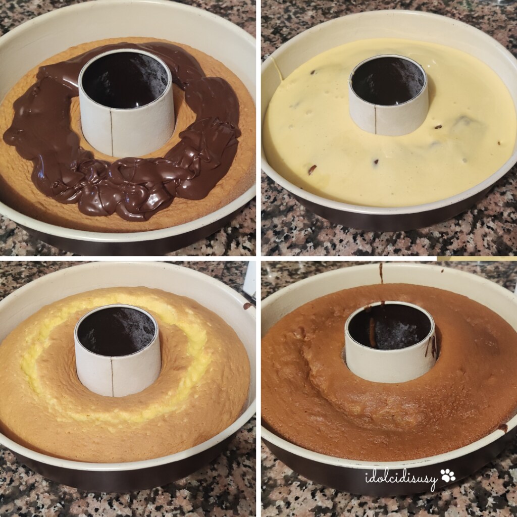 A massa está pronta, despejo metade na forma de bolo, previamente untada e enfarinhada, e asso a 180 °C por 20 minutos. Enquanto isso, deixo o creme de avelã ou a Nutella mais fluida, colocando-a em banho-maria por cerca de dez minutos. Em seguida, retiro do forno, adiciono a Nutella e o restante da massa e asso por mais 20 minutos a 180 °C. Nosso bolo está pronto, deixo esfriar, tiro da forma e corto uma fatia para descobrir o coração cremoso.❤️