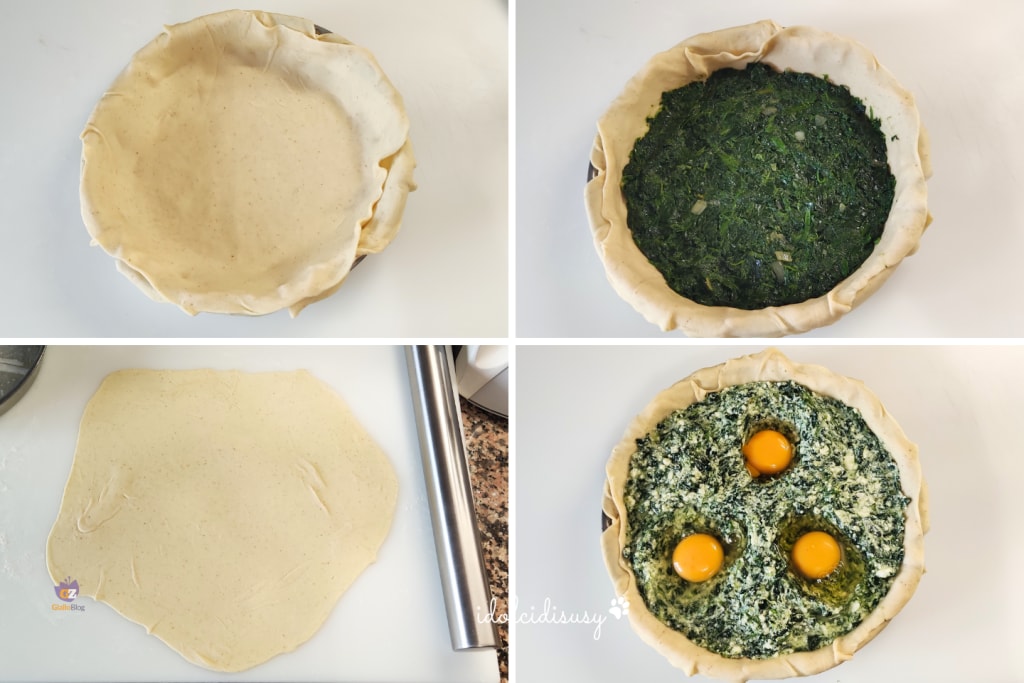 A torta Pasqualina espinafre e ricota é uma torta salgada típica do período de Páscoa, ideal para o café da manhã de Páscoa ou para o piquenique de Páscoa. É uma torta rústica feita de uma massa semelhante à brisée, mas sem manteiga, recheada com acelga ou espinafre, ricota, queijo e ovos crus inteiros colocados diretamente no recheio, durante o cozimento eles cozinham e ao cortar a torta nos dão um efeito wow, sendo visíveis. Suas origens remontam a 1400 e são Genovesas, de fato, segundo a tradição, as mulheres ligurianas conseguiam estender e sobrepor 33 camadas uma sobre a outra, para cada ano de Jesus, eu fiz apenas seis.. e a torta Pasqualina ficou deliciosa do mesmo jeito!