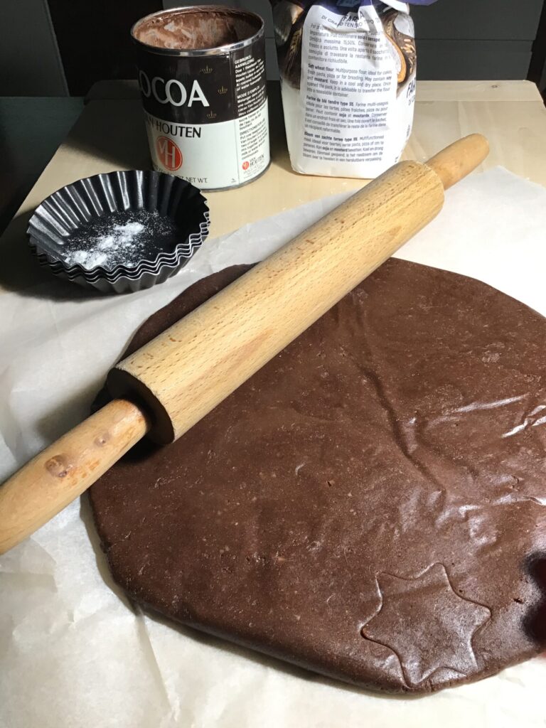 Massa frolla crocante de cacau levemente salgada, para tortas e biscoitos super especial! Esta é uma receita que irá te conquistar, uma daquelas que você transcreve no seu velho e surrado livro de receitas. Mesmo agora que estamos acostumados a procurar receitas na internet, tenho certeza que esta você irá copiar e guardar, por medo de não encontrá-la novamente no complicado mundo da web. Não é uma receita minha, e infelizmente a conheço há pouco tempo, desde que frequentei um curso de Culinária Italiana, ministrado pelo talentoso confeiteiro Emanuele Frigerio. Com esta massa frolla de cacau ele preparou uma torta espacial, que dificilmente se pode esquecer, com ganache de chocolate e caramelo mou. Realmente nos lambuzamos, era de uma delícia “emocionante”. A combinação com o caramelo é realmente acertada. Você pode, no entanto, usá-la também para preparar uma simples torta com geléia. Experimente, por exemplo, com uma compota de framboesa ou de frutas vermelhas, ou com creme de confeiteiro e framboesas frescas ou morangos. Neste caso, talvez diminua a quantidade de sal, coloque apenas uma pitada.
